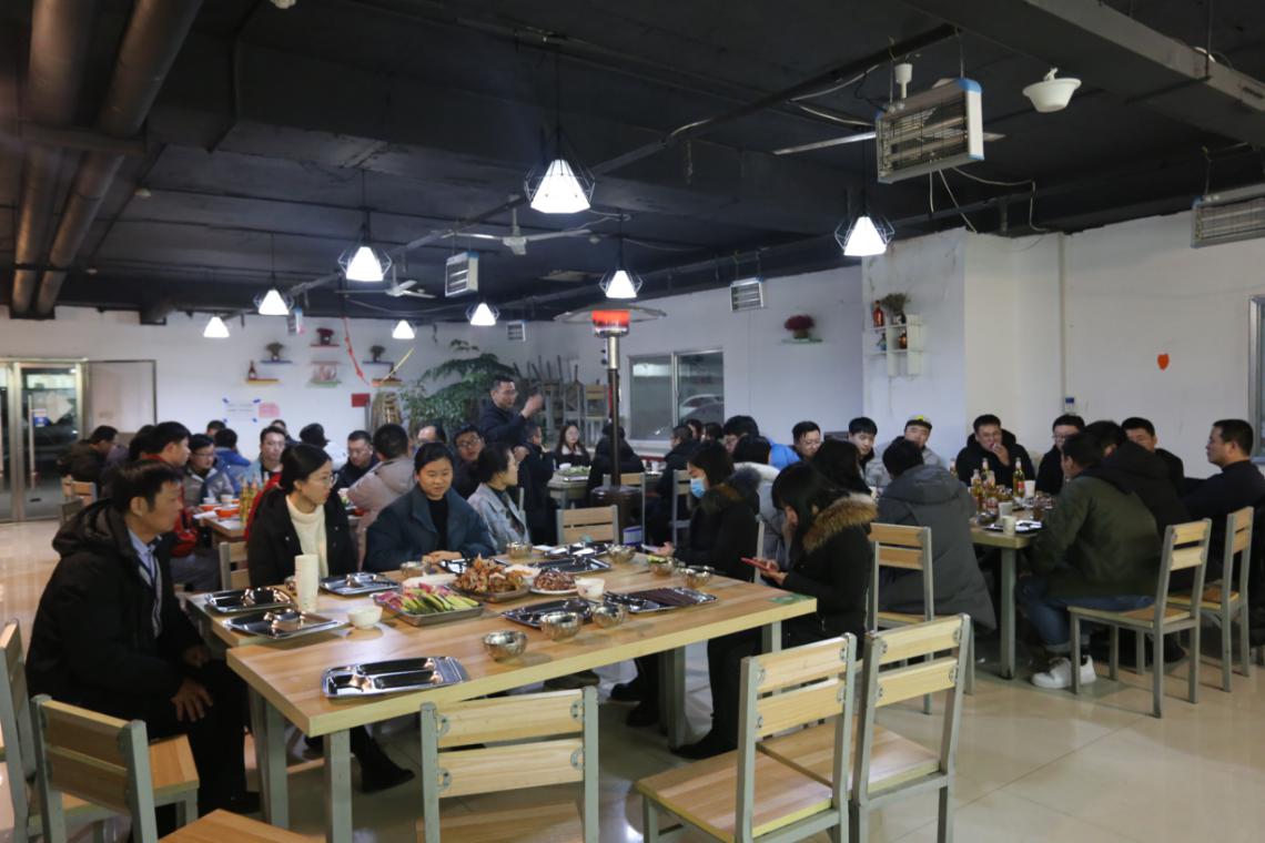 晚上18:00公司聚餐開始,餐廳工作人員給大家準(zhǔn)備了菜肴,大家歡聚一堂,吃著燒雞,喝著啤酒,吃著自己包的水餃,每個(gè)人臉上洋溢著開心的笑容,大家暢所欲言,現(xiàn)場的氣氛達(dá)到了高潮,現(xiàn)場公院長開始發(fā)紅包,紅包雨不斷下起來,氣氛越來越熱烈,大家的熱情像開鍋的沸水一樣,收不住呀!