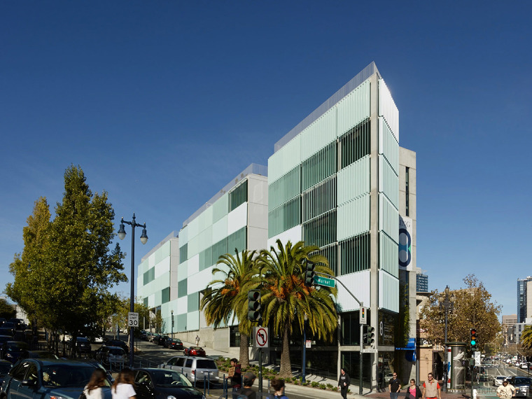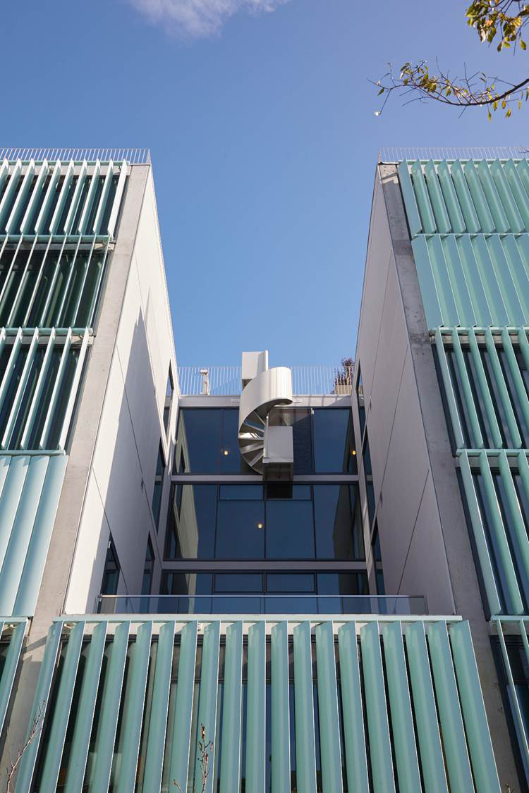 8 Octavia毗鄰101公路,成為進(jìn)入舊金山的地標(biāo)性建筑。由住戶(hù)自由操作的百葉窗,讓建筑立面展現(xiàn)出變化的形象。為了更有效的利用空間,建筑采用復(fù)式設(shè)計(jì),且每個(gè)單元中間包含一個(gè)中庭。建筑設(shè)備隱藏在墻壁內(nèi),為居住者提供足夠的可利用給空間。場(chǎng)地位于101公路與城市道路的連接處,這里也是舊金山西北區(qū)的入口。The First Baptist Church教堂的典型立面及顯著的檐口是這棟建筑的顯著標(biāo)志。與其相反的,在Octavia Boulevard大道的另一邊,8 Octavia完善了城市的入口景觀。這棟地標(biāo)性建筑以其傳統(tǒng)又創(chuàng)新的外貌,成為舊金山的新地標(biāo)。細(xì)長(zhǎng)的建筑體量在街道上延展,并在兩端形成商業(yè)區(qū)。傳統(tǒng)上的舊金山街道立面都較為精致,賦有精巧繁復(fù)的立面裝飾,除此之外,這些當(dāng)代建筑需用較低的能量消耗和較少的材料來(lái)滿(mǎn)足居住的需求。建筑外表皮需具備自我調(diào)節(jié)能力,隨著時(shí)間和季節(jié)的變化做出相應(yīng)改變,并適時(shí)的調(diào)整室內(nèi)環(huán)境氣候。在建筑的西立面,每一戶(hù)居住著都可以通過(guò)調(diào)整外立面百葉窗來(lái)控制自家的太陽(yáng)光照強(qiáng)度,噪音大小,并同時(shí)改變著外立面圖案。這種不統(tǒng)一的變化如同指示牌,不斷映射著居住者的生活狀態(tài)。